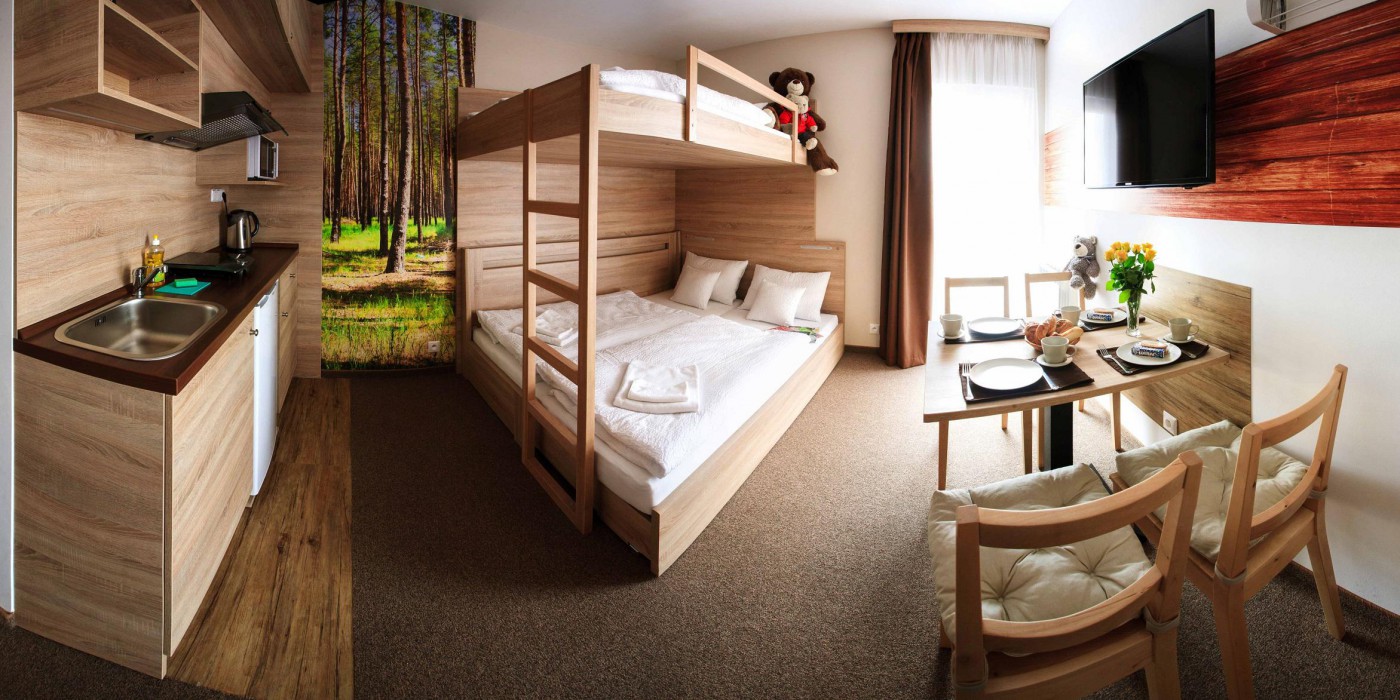This family studio is designed for two adults and two children or for three adults. It is a cheaper option of accommodation for more persons than accommodation in apartments.