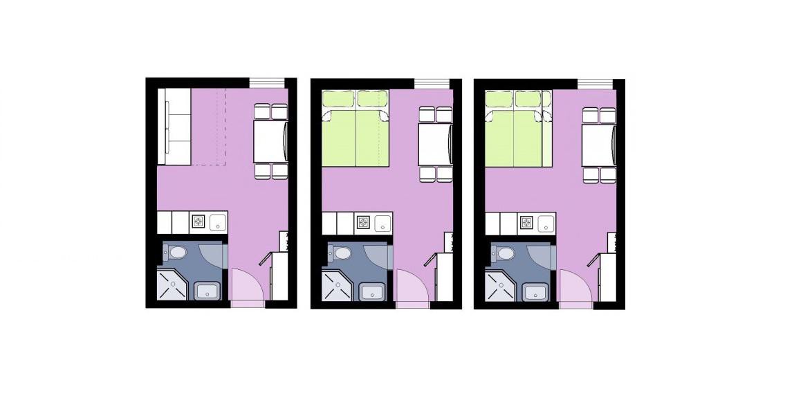 This studio provides a cost-efficient accommodation for 2 people less space consuming.