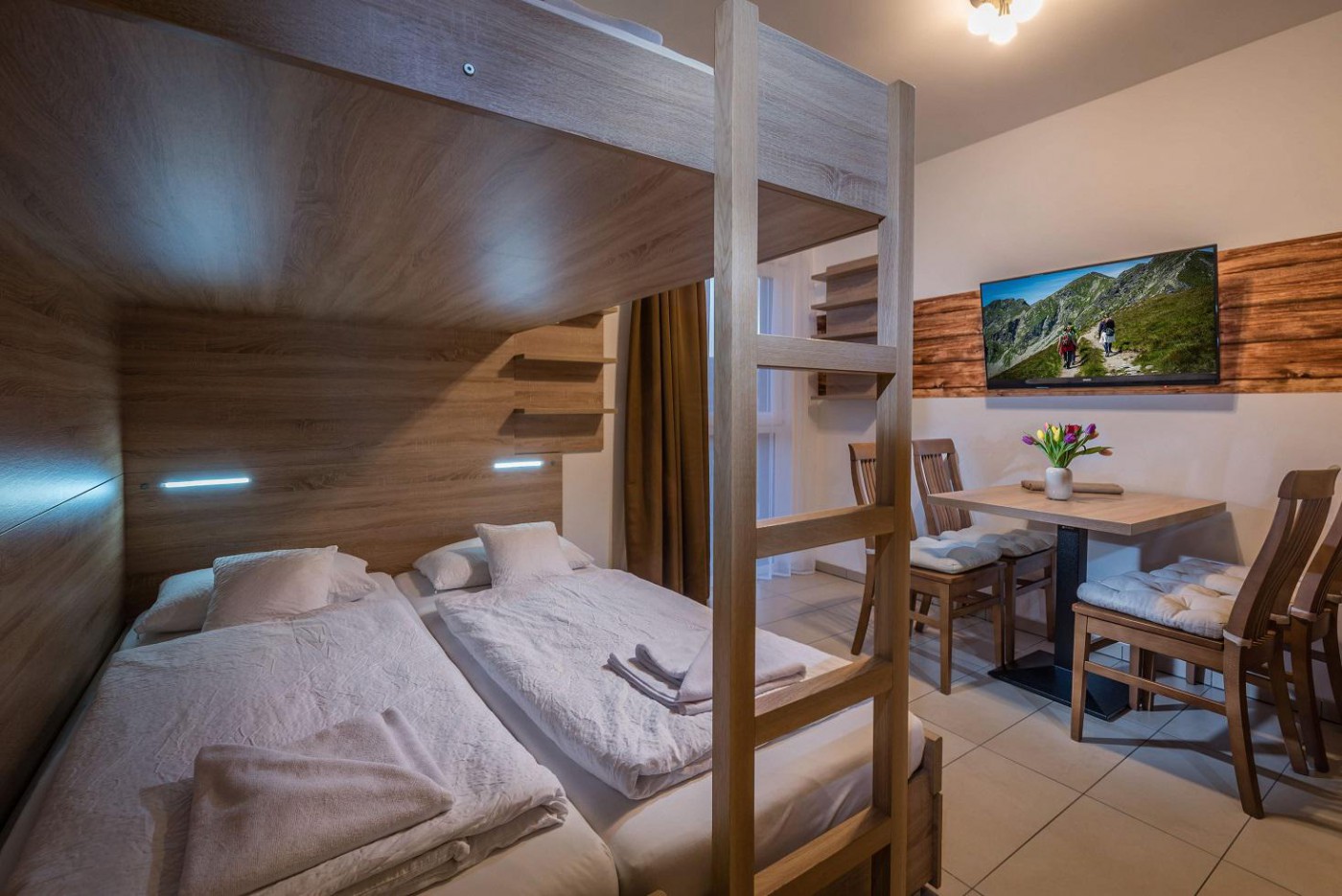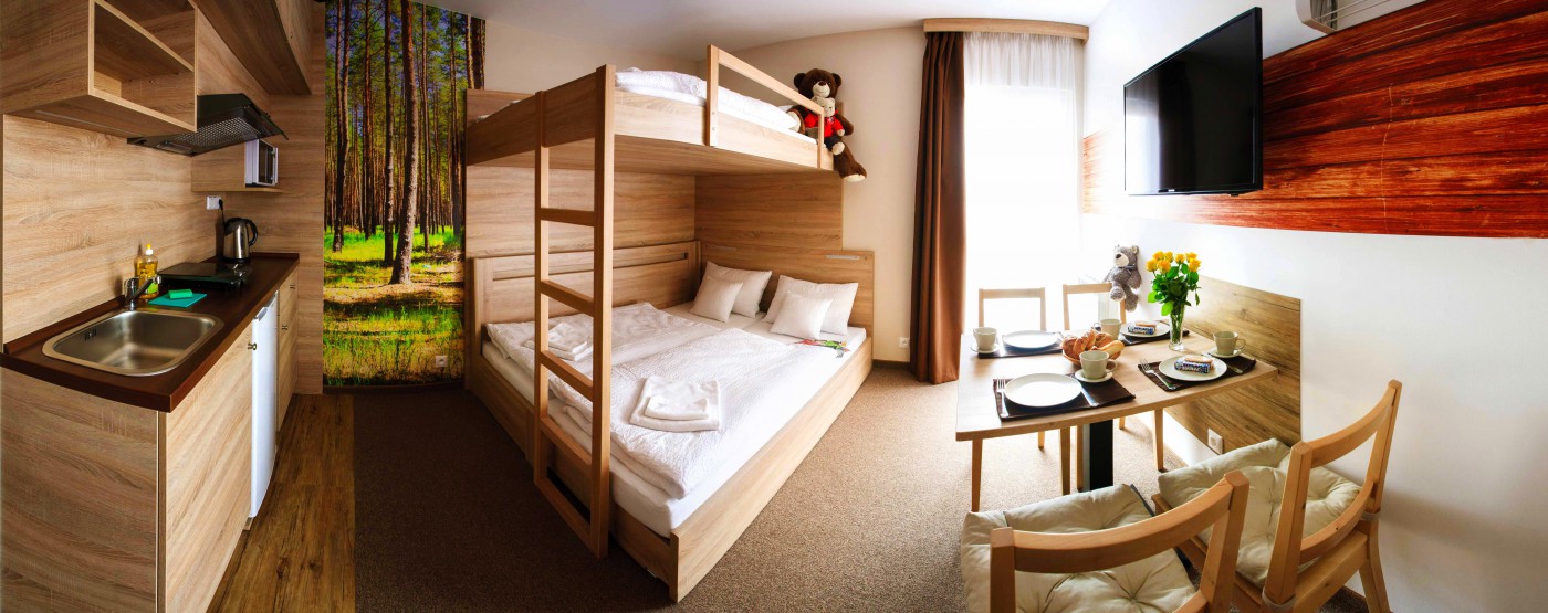 Ez a családi stúdió alkalmas 2 felnőtt és 2 gyermek részére, illetve 3 felnőtt részére. Gazdaságosabb elszállásolást biztosít több személy részére.
