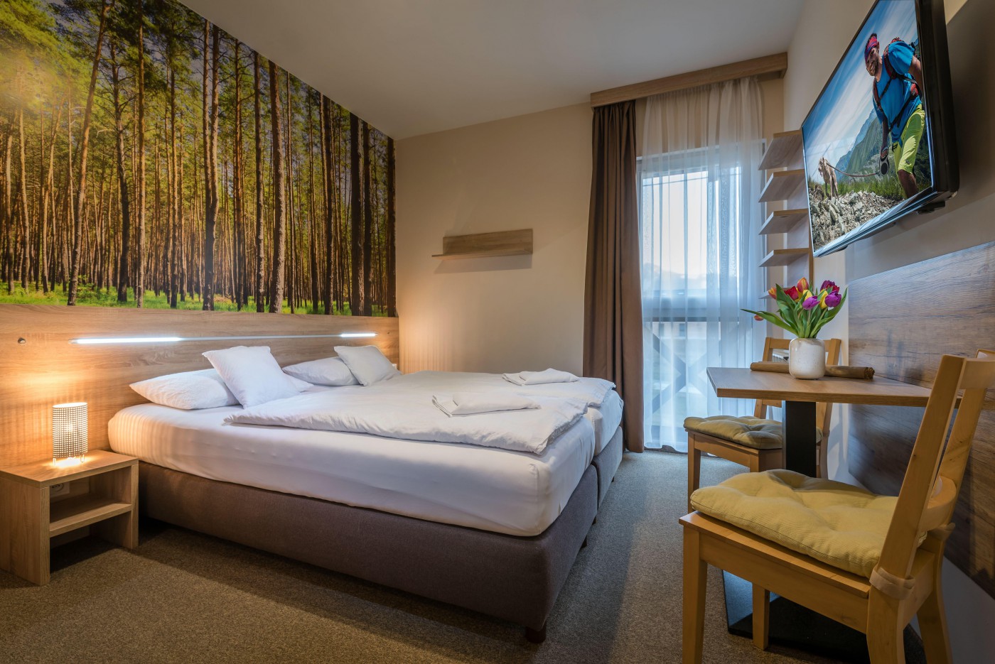 Studio zostało stylowo urządzone, posiada wielkie okno francuskie przez które można podziwiać wspaniałe widoki na otaczające góry.