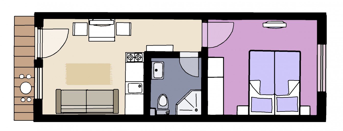 Этот апартамент рекомендуется, если вас 4 человек! Он может также служить в качестве просторной гостиной для 2 или 3 человек .