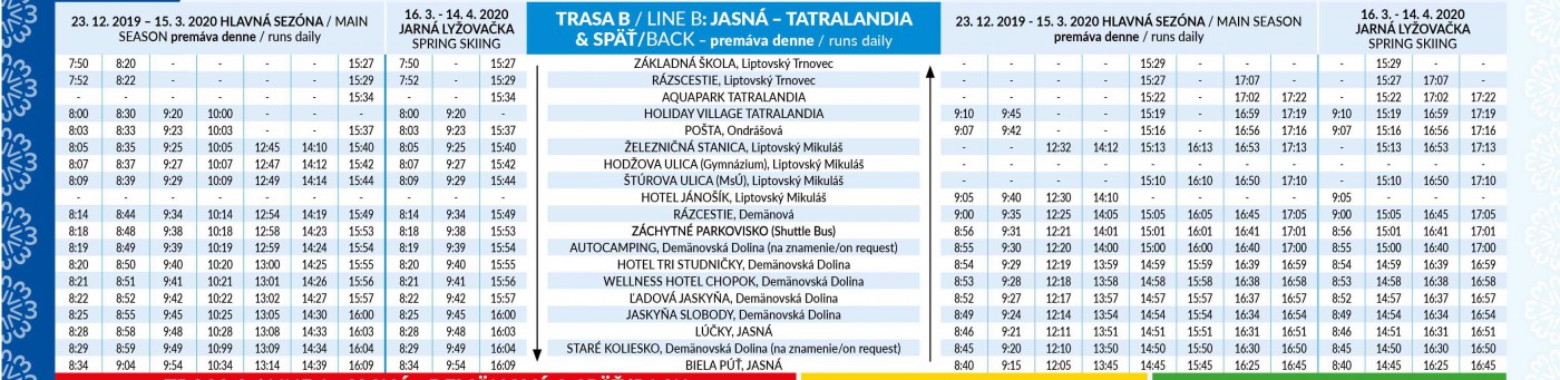 | LINE B: Demänová -> TATRALANDIA | |||||||||||||